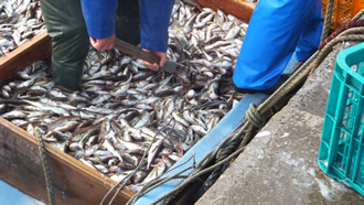 網揚げ風景(当日は凪いでましたが少しでも荒れているとヤバイです)
